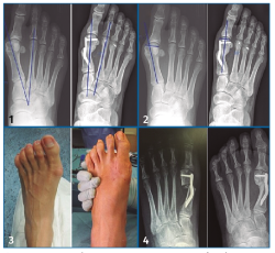 Results: 43 patients were surgically operated and 35 were included in the study. The AOFAS average score was 91.12 points at 12 months of follow-up. Postoperative radiographic evaluations showed a significant statistically improvement compared with preoperative values. The average angular correction was 11,3° for intermetatarsal angle, and 21,6° for the PASA. We didn’t obtain any complications.