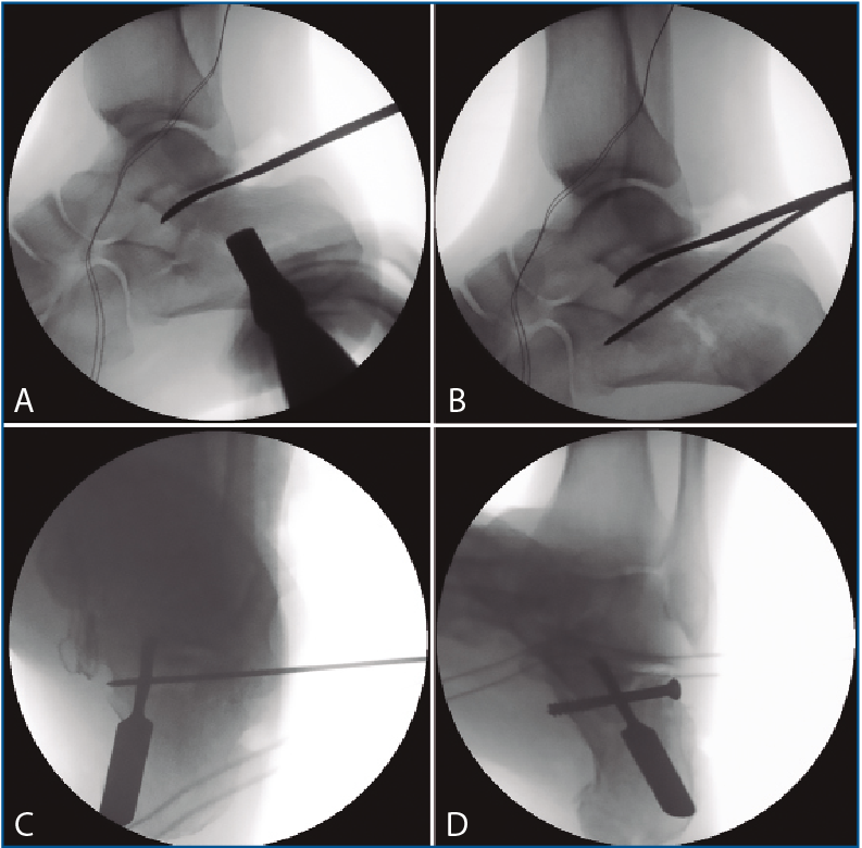 Methods: six patients with fractures type IIA and IIB were treated, 2 by calcaneoplasty and 4 by percutaneous fixation with cannulated screws, all of them assisted by subtalar posterior arthroscopy.