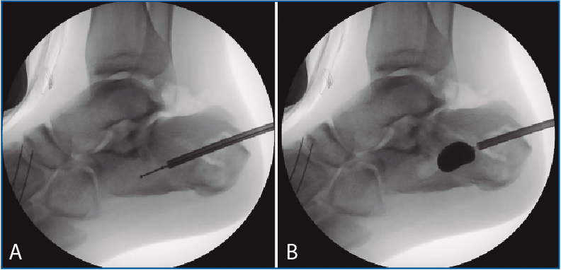 Introduction: Sanders type IIA and IIB calcaneal fractures can be treated by percutaneous fixation or calcaneoplasty assisted by subtalar arthroscopy. The aim of our study is to value the clinical results and short-term complications of patients with calcaneal fractures Sanders type IIA and IIB treated in our center with minimally invasive techniques assisted by posterior arthroscopy.