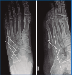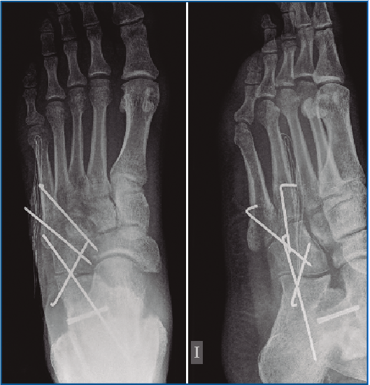 Presentamos el caso de un varón de 42 años que, tras un accidente de esquí, es diagnosticado de luxación de cuboides asociada a fractura de 4.º metatarsiano, 3.ª cuña y proceso lateral del astrágalo. Se realiza tratamiento quirúrgico mediante reducción abierta y fijación interna con agujas de Kirschner consiguiendo un buen resultado funcional (escala de la American Orthopaedic Foot and Ankle Society –AOFAS– de 90) a los 2 años del traumatismo. Se presentan las características y el tratamiento de esta inusual lesión.