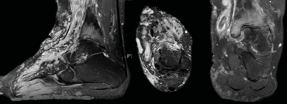 La artrodesis artroscópica anterior ha sido probada como una técnica segura con una alta tasa de unión. En ciertos casos, sin embargo, un abordaje artroscópico anterior puede estar contraindicado por el mal estado de las partes blandas. El síndrome de Klippel-Trénaunay es una malformación compleja caracterizada por la tríada clínica de hemangiomas, anomalías venosas y linfáticas e hipertrofia de los huesos y tejidos blandos de una extremidad inferior.