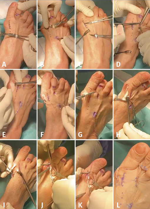 Presentamos el caso en una mujer de 78 años que consultó por limitación para la movilidad del hallux acompañada de dificultad para la deambulación en el pie derecho de 2 años de evolución tras una intervención quirúrgica de la rodilla derecha por un schwannoma al nivel del ciático poplíteo externo. Como método de tratamiento para recuperar la funcionalidad del primer dedo, se realiza una transferencia tendinosa del extensor digitorum longus al extensor hallucis longus mediante técnica de Pulvertaft con buen resultado funcional.