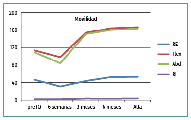 Results: we included 13 patients. Mean age of 57.5 (24-73). Time elapsed between injury and treatment was 18 weeks (2-48), mean follow-up was 7 months (5-12), mean time for immobilization was 5.6 weeks (4-6). Rehabilitation performed for 4.2 months (3-6). VAS at discharge was 0.3 (0-4), Constant-Murley score 87 (65-95) and in mobility the external rotation was 53.2 (45-60), forward flexion of 165.5 (155-180) and abduction 162.7 (140-180).