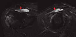 All the cases confirmed and treated in our centre (5) were revised, having 3 cases of shoulder LA and 2 cases of knee LA. Three of the cases were male patients and 2 were female patients. The variables taken into account were demographic data, joint location, imaging studies performed, time form the onset of symptoms until surgical procedure, associated injuries and complications or reinterventions. In all cases, the elected treatment included either artrhroscopic or open debridement and electrocauterization.