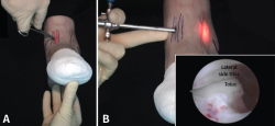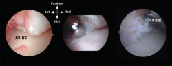 El pinzamiento óseo anterior del tobillo es un síndrome caracterizado por dolor, causado por la inflamación del tejido blando, que queda comprimido entre los osteofitos del astrágalo y la tibia durante las fuerzas de flexión dorsal. La artroscopia del tobillo proporciona resultados buenos a excelentes con pocas complicaciones en este tipo de procesos. En la exploración, se puede provocar dolor por palpación sobre la interlínea articular anteromedial y/o anterolateral. Es necesario realizar una planificación preoperatoria adecuada, basada en las radiografías estándar (anteroposterior, lateral y oblicua) y la resonancia magnética, en orden de identificar y localizar los osteofitos para realizar una correcta y completa resección de estos, lo que proporcionará el mejor resultado posible.