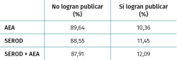 Methods: the oral communications of SEROD from 2005 to 2012, AEA from 2006 to 2011 and SEROD + AEA from 2014 and 2015 are studied with a total of 792 oral communications studied. Other parameters that also influence the value of the publication ratio will be studied. A more detailed analysis of communications is also carried out.