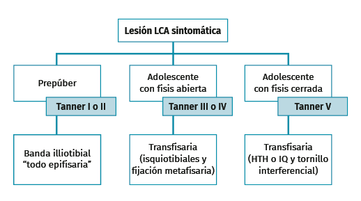 Las lesiones del ligamento cruzado anterior (LCA) en pacientes esqueléticamente inmaduros han aumentado en los últimos años. Esto puede ser debido a determinados factores como la especialización deportiva temprana, una mayor conciencia de esta lesión y una mejora en la capacidad diagnóstica. El manejo de estas lesiones sigue siendo controvertido. Excepcionalmente, los pacientes asintomáticos y con una rodilla clínicamente estable pueden ser tratados de manera conservadora, porque hoy en día existe evidencia científica que relaciona mejores resultados clínicos y funcionales con la estabilización quirúrgica en pacientes con rodillas inestables o lesiones concomitantes. Parece conveniente en todos los casos realizar una evaluación de la madurez esquelética e individualizar el tratamiento. El tratamiento quirúrgico en estos pacientes inmaduros presenta desafíos concretos, con respecto a la elección de la técnica de la reconstrucción, la elección y la preparación del injerto, la rehabilitación postoperatoria y el regreso al deporte. Este artículo revisa los factores más relevantes sobre esta patología, para ayudar a enfocar el manejo de las lesiones del LCA en pacientes inmaduros.