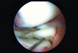 Reparación artroscópica de lesión meniscal con forma de asa de cubo