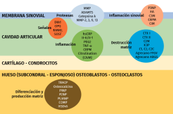 It has been seen that lumican and a 29 kDa metabolite of the latter enhance with the progression of osteoarthrosis(74,75). In turn, ADAMTS4, an aggrecanase synthesized by the osteoarthrotic synovial membrane, is associated to aggrecan degradation in the superficial zone of the joint cartilage(76), and is a marker of inflammation in the synovial fluid(77).