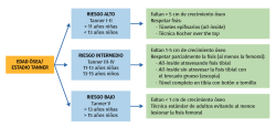 In selecting the surgical technique, it is advisable to evaluate the skeletal and bone maturity of the patient. Pediatric patients amenable to ACL reconstruction surgery can be stratified according to the risk of growth alteration due to physis damage (Figure 8).