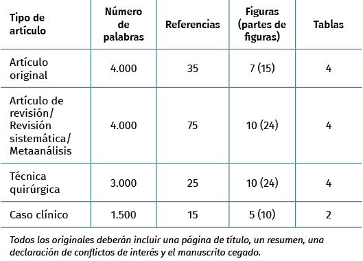 All originals submitted to the Revista Española de Artroscopia y Cirugía Articular for consideration must comply with the instructions for authors.
