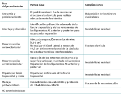 Chronic lesions, defined as those with a duration of 3-6 weeks(13), accompanied by residual pain and dysfunction as a consequence of failed initial conservative management, also constitute a clear indication for surgery. With regard to the surgical treatment of these chronic injuries, and in the same way as in the acute cases, a great variety of both open and arthroscopic techniques have been described(3), though there is no agreement as to which is the best option in terms of the outcomes obtained or the associated complications. It does seem clear that there has been a transition in recent decades from non-anatomical to anatomical techniques, in an attempt to restore both vertical and horizontal stability of the AC joint.