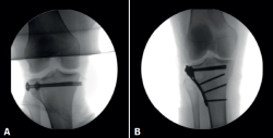 Arthroscopically assisted fracture management has been advocated as a possible adjunct to the operative treatment of TPF since it may result in enhanced visualization and therefore more accurate reduction(23). A recent study compared arthroscopic assisted reduction and internal fixation (ARIF) with open reduction internal fixation (ORIF) treatment. In their series of 100 consecutive patients, an intra-articular injury incidence of 69% was found(24). Of note, the authors concluded that no differences were encountered between ARIF and ORIF treatment in Schatzker type I fractures. They found ARIF treatment preferable when meniscal tears were present as it presented the opportunity for simultaneous treatment. In cases of Schatzker II, III and IV fractures, there was a small difference in clinical outcomes in favour of ARIF but it was not statistically significant(24).