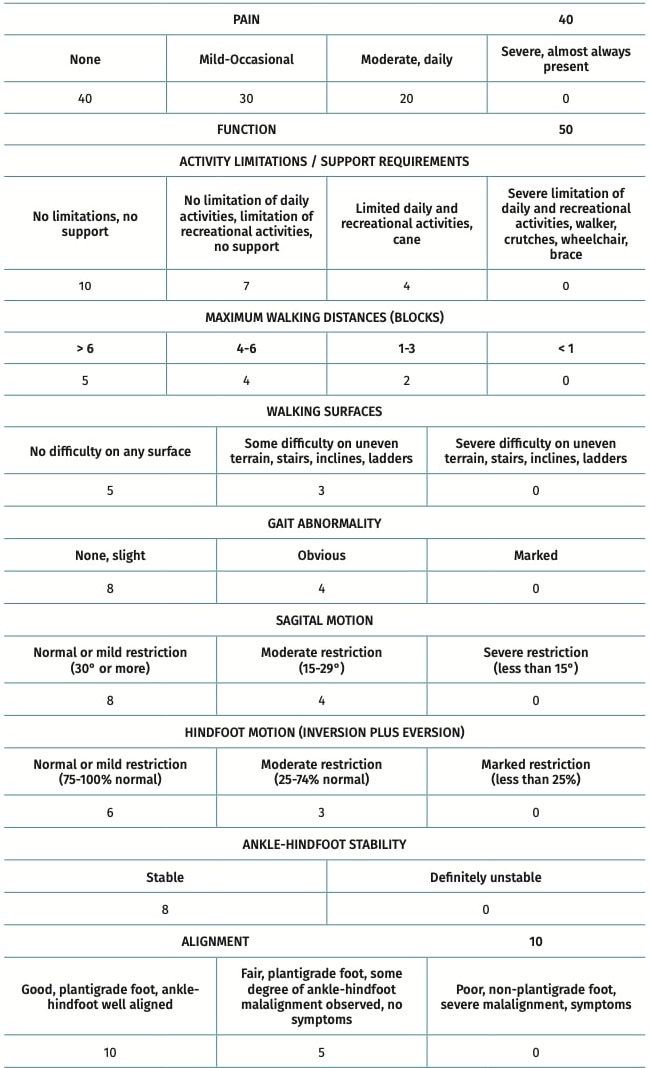 American Orthopaedic Foot and Ankle Society (AOFAS)(17) (Table 3)