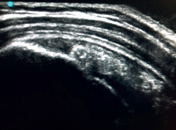 Sonoelastography is a variant of ultrasound exploration that measures tissue elasticity in real time. It is based on the principle that soft tissue compression causes tissue displacement, and, in this regard, more rigid tissues displace less than more lax tissues(29). Such displacement is calculated in real time and is displayed on the screen of the ultrasound system as a colour scale. Therefore, sonoelastography can be used to diagnose changes in tendon ultrasound structure such as edema, tissue degeneration or partial lesions of a very small size that may go undetected by conventional ultrasound(30,31).