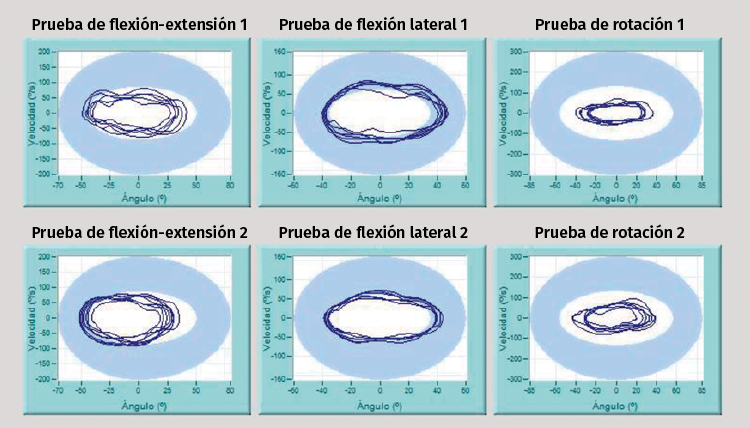 Conclusion: the biomechanical technique has turned out to be a useful tool, as a complementary test, for the functional assessment and for the evolutionary control of the whiplash patient, contributing to their labor reincorporation.