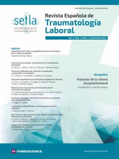 Las fracturas de clavícula son una entidad bastante frecuente debido a la localización subcutánea del hueso. Las fracturas de clavícula distal representan únicamente el 15-28% de las fracturas, aunque suponen entre el 30 y el 45% de los casos de pseudoartrosis; por ello, debemos plantearnos el tratamiento quirúrgico de entrada. Gran variedad de especialistas han propuesto sus propios sistemas de clasificación, cada uno con sus propias ventajas e inconvenientes. El tratamiento y los resultados de la fractura de extremo distal de la clavícula dependen del desplazamiento y de la lesión de los ligamentos coracoclaviculares (CC), que hacen que la fractura sea inestable. Hay numerosas modalidades de tratamiento disponibles para su manejo. Hasta la fecha no se ha descrito ninguna técnica gold standard.