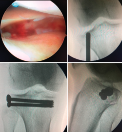 El uso del artroscopio en el mismo acto quirúrgico es una herramienta que nos permite comprobar la reducción intraarticular de la fractura.