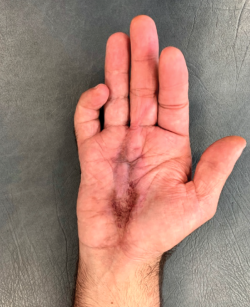 Conclusión: el tratamiento fisioterápico, aplicado en este caso de forma intensiva en tratamiento diario, en turno de mañana y turno de tarde, ha permitido la recuperación funcional de una mano que se preveía catastrófica.