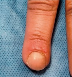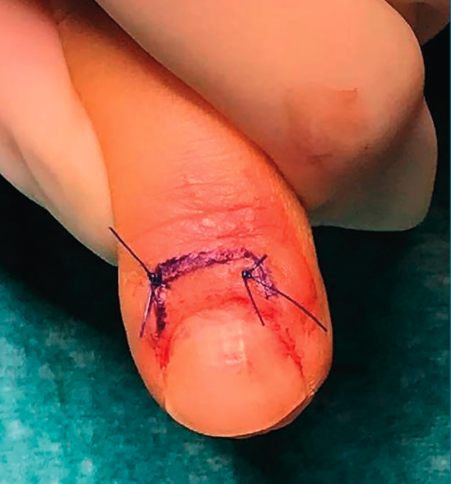 Discusión: el colgajo eponiquial es una técnica sencilla y práctica que mejora la estética y la funcionalidad tras las amputaciones distales de los dedos evitando la comorbilidad asociada y las deformidades ungueales de otras técnicas descritas de reconstrucción de la lámina ungueal, como las transferencias osteo-onicocutáneas de los dedos del pie.