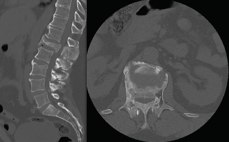 La patología traumática aguda de la columna vertebral es un hecho bastante frecuente en el medio laboral. En ocasiones, puede suponer todo un reto, ya sea tanto por el paciente como por el mecanismo o por una mezcla de ambos. El caso clínico que aquí se presenta correspondía, a priori, a una fractura vertebral inestable, aparentemente era traumática y aguda, pero, tras un correcto estudio, se consideró una fractura crónica secundaria a la presencia de una enfermedad metabólica ósea subyacente.