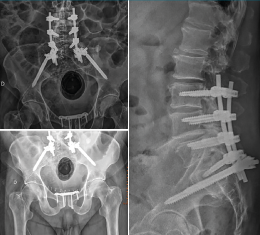 Spinopelvic dissociation is a rare and infrequent injury. It is associated with high-energy trauma. It happens when axial compression forces impact the spine against the sacrum. Transverse sacral fracture associated with two sagittal fractures in both sacral wings cause the disconnection between the spine and the pelvic ring. It is a serious and potentially unstable injury that causes neurological damages in most cases and can leave long-term sequelae if we don’t diagnose quickly and act correctly. There is a consensus nowadays that the best option to treat these injuries is surgery, being the lumbopelvic fixation the first choice. The final outcomes in the medium-long term will be fundamentally conditioned by the presence of neurological sequelae.