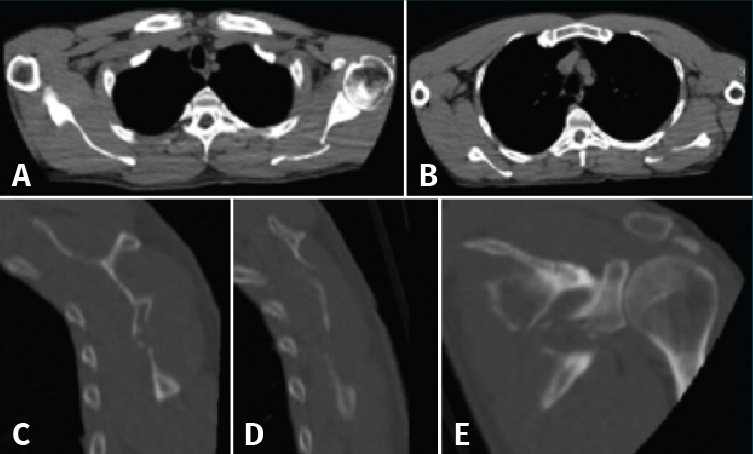 Las fracturas de escápula constituyen lesiones poco habituales (aproximadamente, el 1% de todas las fracturas) que suelen acontecer como consecuencia de traumatismos de alta energía, por lo que no es inusual encontrar asociadas otras lesiones potencialmente mortales. El tratamiento quirúrgico de estas fracturas fue descrito hace más de un siglo pero no ha sido hasta las dos últimas décadas cuando se ha publicado mayor cantidad de trabajos científicos acerca de ello, en gran parte gracias a los avances en técnica de imagen. En el presente trabajo nuestro objetivo es revisar el conocimiento teórico disponible en este tipo de lesiones e ilustrar, mediante la exposición de un caso clínico, cómo la nueva tecnología en impresión tridimensional puede facilitar la planificación quirúrgica preoperatoria con el objetivo de ayudar al cirujano a alcanzar los objetivos más deseables para la recuperación clínica, funcional y laboral del paciente.