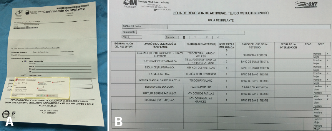 When the anterior cruciate ligament (ACL) ruptures, the knee becomes unstable and a usual option for surgical reconstruction is the use of a cryopreserved tendon allograft. The process for its application follows the same preparation and documentation standards required for any human tissue intended for transplantation, and the nursing procedure for the use of allograft has been created to ensure compliance and the safety of the process.
