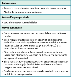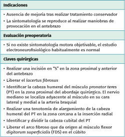 Se describen los hallazgos fisiopatológicos que ayudan a la interpretación de los estudios electroneurofisiológicos y de los hallazgos clínicos, así como las opciones de tratamiento conservador y quirúrgico, haciendo hincapié en el detalle de la descompresión quirúrgica con ilustraciones realizadas en especímenes frescos.