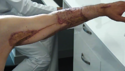 Ante un traumatismo grave del miembro superior izquierdo, con degloving axiloantebraquial y compromiso vasculonervioso, es de suma importancia el trabajo coordinado tanto de servicios quirúrgicos como rehabilitadores, para el diagnóstico precoz y el tratamiento adecuado de las lesiones, que, en este caso, se consiguen recuperar gracias a la conjunción de la inmediatez del diagnóstico y el traslado a una zona especializada, la minuciosidad y la detección de complicaciones quirúrgicas de aparición precoz, así como el trabajo combinado de la rehabilitación progresiva, que dieron por resultado no solo salvar la extremidad superior con riesgo real de amputación, sino conseguir su funcionalidad casi completa con reincorporación no solo a la vida diaria sino al trabajo habitual de carpintería, con todos los requerimientos físicos que dicha labor supone.