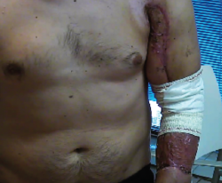 In the event of severe trauma to the left upper limb, with axiloantebrachial degloving and vasculonervous involvement, the coordinated work of both surgical and rehabilitation services is of utmost importance, for early diagnosis and appropriate treatment of lesions, in this case, it is possible to recover thanks to the conjunction of the immediate diagnosis and transfer to a specialized area, the thoroughness and detection of early-onset surgical complications as well as th combined work of progressive rehabilitation that resulted, not only in saving the upper limb with real risk of amputation, but also in achieving its almost complete functionality with reincorporation not only to daily life but also to regular work of carpentry, with all physical requirements that such work entails.