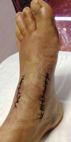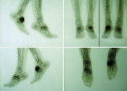 Caso clínico: paciente de 53 años que consulta por dolor y deformidad en mediopié izquierdo instaurado en los últimos meses. Las pruebas complementarias realizadas mediante radiología simple, tomografía computarizada y gammagrafía mostraron una pseudoartrosis en la rama medial de la osteotomía.