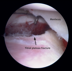 Arthroscopically assisted fracture management has been advocated as a possible adjunct to the operative treatment of TPF since it may result in enhanced visualization and therefore more accurate reduction(23). A recent study compared arthroscopic assisted reduction and internal fixation (ARIF) with open reduction internal fixation (ORIF) treatment. In their series of 100 consecutive patients, an intra-articular injury incidence of 69% was found(24). Of note, the authors concluded that no differences were encountered between ARIF and ORIF treatment in Schatzker type I fractures. They found ARIF treatment preferable when meniscal tears were present as it presented the opportunity for simultaneous treatment. In cases of Schatzker II, III and IV fractures, there was a small difference in clinical outcomes in favour of ARIF but it was not statistically significant(24).