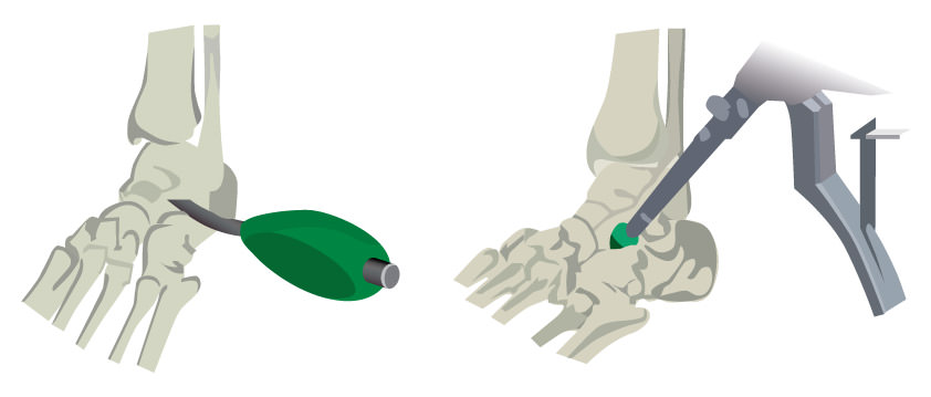 Existirá un 1-2% de los niños que, tras el tratamiento conservador, continúa con clínica de dolor, cansancio precoz y dificultad para la práctica deportiva(2); será este grupo el que se beneficiará de la opción quirúrgica. Se han propuesto distintas técnicas para la corrección quirúrgica, pero es la artrorrisis subtalar la que reporta hasta hoy los mejores resultados de fijación temporal, con una corrección adecuada en el 97% de los casos(5). La endoprótesis posicionada a nivel del seno del tarso actúa como un espaciador limitando el valgo y la eversión subtalar.