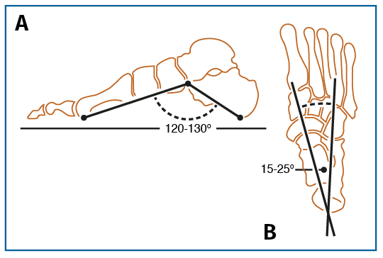 Figura 2. A: ángulo Moreau-Costa-Bartani; B: ángulo astrágalo-calcáneo.