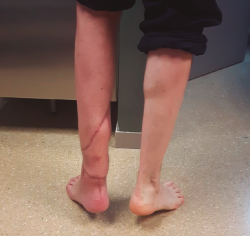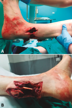 Actualmente hay descrito un amplio abanico de técnicas quirúrgicas para tratar lesiones crónicas del tendón calcáneo en las que existe un defecto del tendón, desde técnicas de avance de la fascia hasta transferencias de tendones o el uso de injertos. No hemos encontrado referencias en la literatura del uso de aloinjerto de tendón calcáneo para lesiones agudas. Nuestro objetivo es presentar el caso clínico de un varón con fractura abierta de peroné de grado IIIB de Gustilo y Anderson con un defecto del tendón calcáneo de unos 15 cm y gran defecto cutáneo, tras sufrir una herida por arma de fuego. Se realizó una plastia tendinosa con aloinjerto de tendón calcáneo y cobertura cutánea de forma simultánea. Tras 10 meses desde la intervención, los resultados clínicos y funcionales son alentadores.