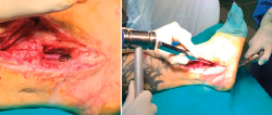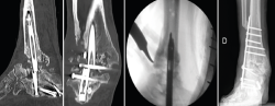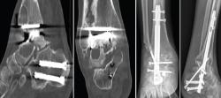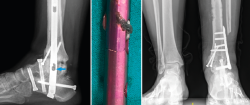 Discusión: para aumentar la rigidez del montaje una vez retirado el clavo, se puede colocar otro clavo de mayor tamaño y grosor o, preferiblemente, una placa bloqueada tibiotalocalcánea.