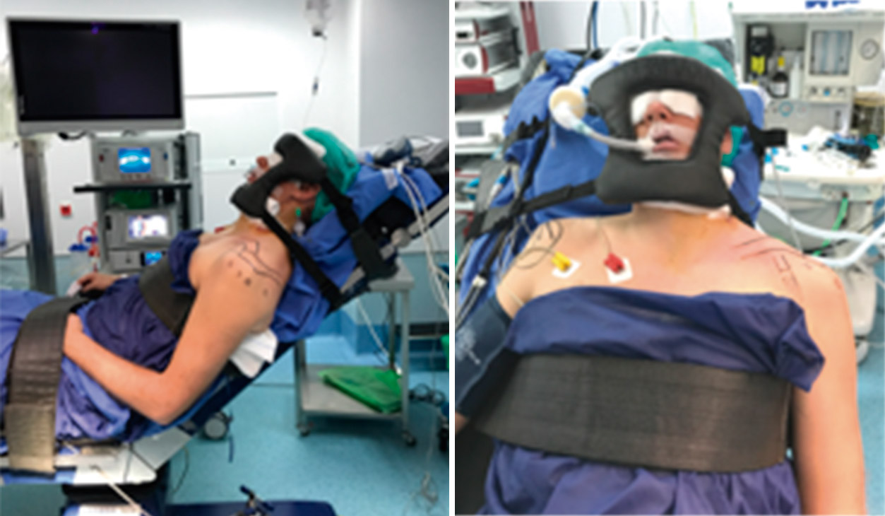 La posición en silla de playa se usa en cirugía artroscópica de hombro, ofreciendo mejor orientación anatómica, excelente visualización de las estructuras glenohumerales y mejorando el acceso a las vías aéreas. Sin embargo, un porcentaje mínimo se asocia a complicaciones neurológicas como eventos cerebrales isquémicos, lesiones compresivas de médula espinal, coma y muerte; fenómenos que se relacionan con hipoperfusión cerebral. La posición vertical está asociada con hipotensión y una reducción de la presión arterial por debajo del umbral de autorregulación puede disminuir el flujo sanguíneo cerebral y la oxigenación, que puede llegar, en la posición en silla de playa, a disminuir > 20%(1)(2).