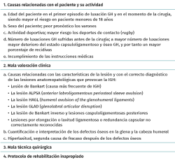El hombro es la articulación del cuerpo que se luxa con más frecuencia y con índices de recidiva tras la reparación primaria muy altos en algunas series publicadas. El objetivo de este artículo es recoger los puntos debatidos y consensuados durante las Jornadas de Actualización en Artroscopia de Hombro AEA-LATAM sobre las causas de recidiva de la inestabilidad glenohumeral tras una reparación primaria y cómo actuar en cada caso. Tras el análisis y el debate de estos temas, se concluyó con un decálogo de consenso entre todos los participantes que se expone el apartado de conclusiones.