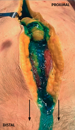 Relevancia clínica: la extravasación de líquido a la cavidad abdominal es una constante en la artroscopia de cadera. La vía predominante de dicha extravasación es el conducto subinguinal. La compresión del suero puede provocar alteraciones anatómicas en las estructuras musculares y neurovasculares que podrían tener importantes repercusiones clínicas.