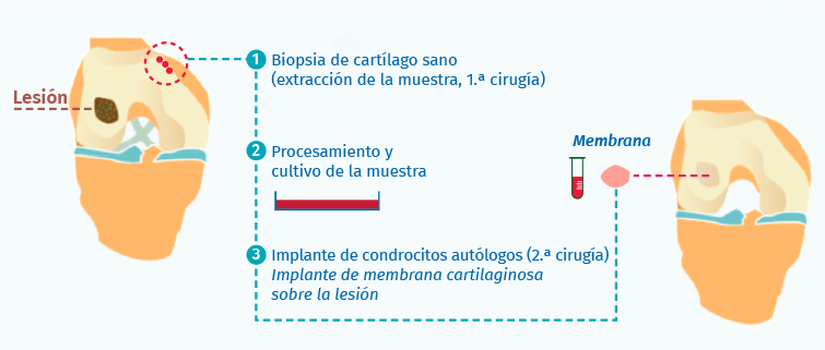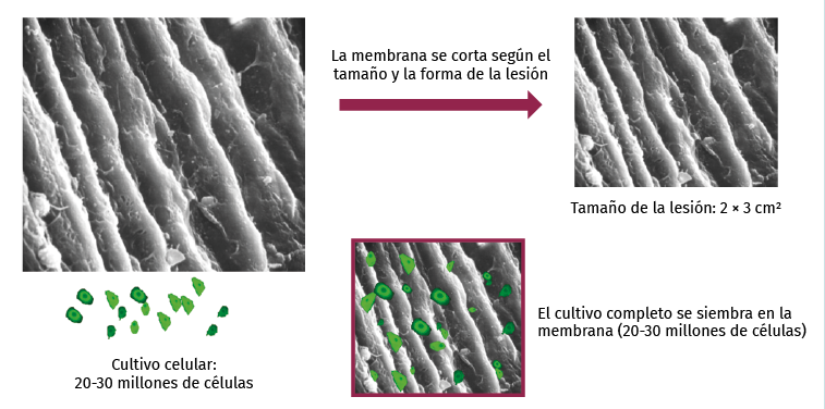• Once the cells have been absorbed by the membrane, the latter is implanted at the lesion site.