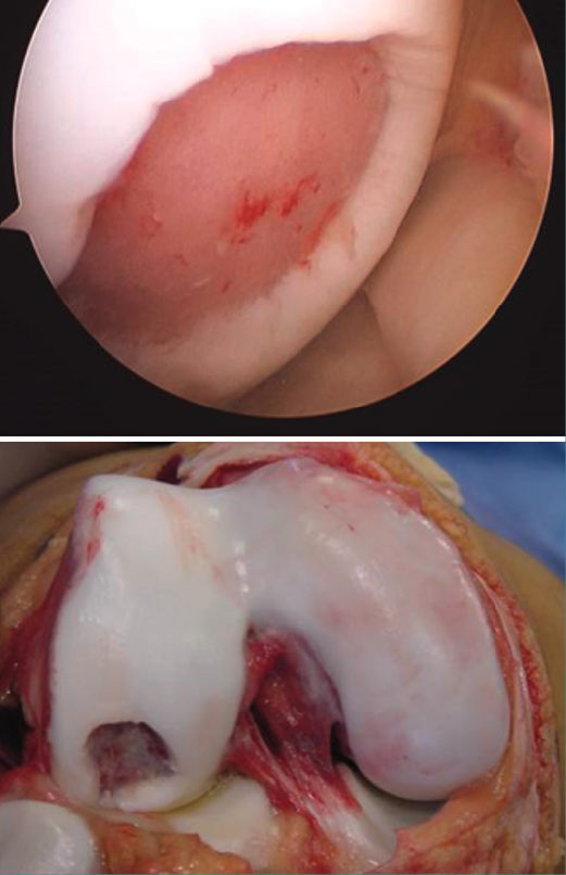 Although cartilage damage is most often of idiopathic or degenerative origin, joint cartilage injuries are also frequently caused by traumatisms (Figure 1A), i.e., joint trauma, followed by osteochondritis dissecans (OCD)(1,2) (Figure 1B).