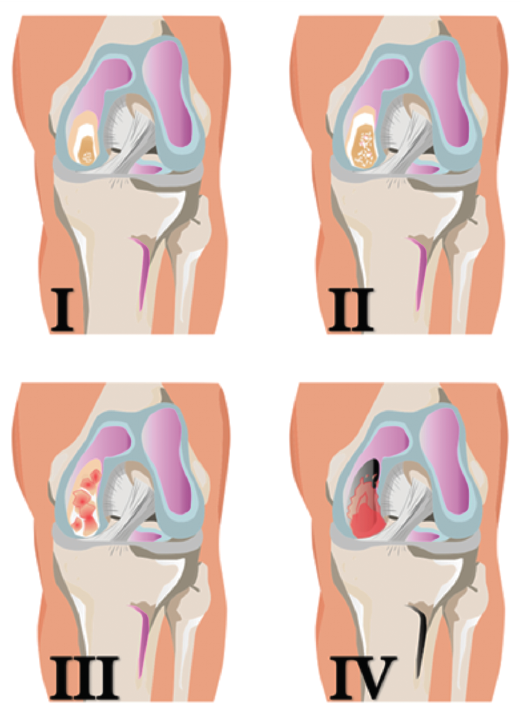 Although there are a number of classifications for assessing the degree of joint cartilage damage, the most widely used option is the classification of Outerbridge (1961), which defines four grades(5,6) (Figure 3):