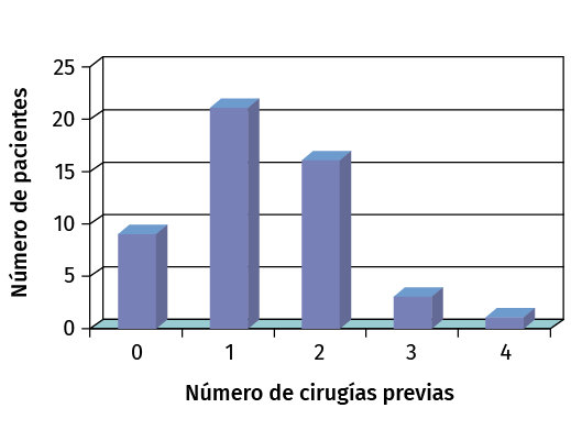 Mobility after surgery was complete in all but four cases, which presented limitation over the last degrees of flexion. Of the 50 patients, 32 (64%) were able to resume their sports activities while 21 (36%) did not return to the sports activities they had before the injury - though in a number of cases some type of sports proved possible, such as swimming or bicycling. Percentage improvement among the patients that had undergone previous surgery was 69% versus 89% among those without previous surgery (Fisher exact test; p = 0.1442). Although the difference was not statistically significant, the outcomes tended to be better among those individuals that had not undergone previous surgery.
