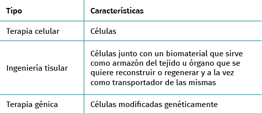 However, in order for cell application as a medication to be safe, it is necessary for regulatory agencies to intervene in the corresponding utilization and of course manufacturing processes. In 2007 a European Directive was introduced, defining for the first time these new medications based on the use of cells. The Directive encompassed them within a new category of drugs called advanced therapy medicinal products, and which include three types of medications(15). The term "advanced therapy" is curious, though the authorities underscore that it is not intended to downplay the importance of traditional medicines. Rather, the term refers to the fact that these are medications in which the main component is alive, and that it is mainly obtained through the culture of cells from higher organisms and following a long research process. Within this category of advanced therapy medicinal products, three types can be distinguished: cell therapy, tissue engineering and gene therapy(15) (Table 1).