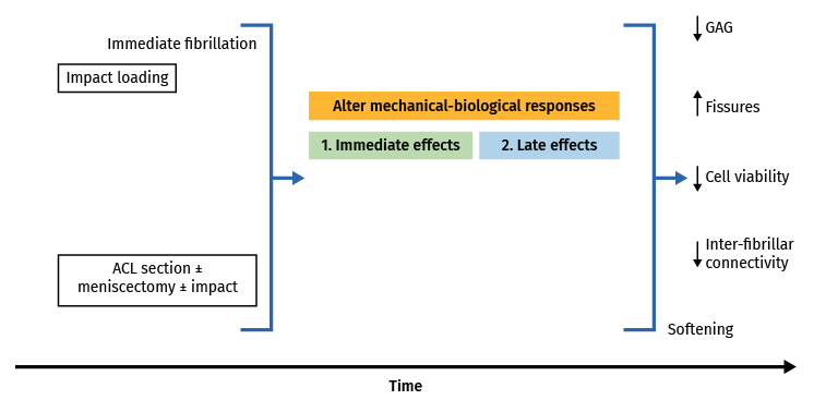 Figure 4. Schematic representation of the short-term modifications produced by impacts and overloading in vitro. Modified from Nickien et al.(98).