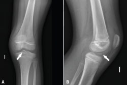 In the case of knee pain following trauma in a child, we first need to compile a detailed case history, seeking to identify the causal mechanism. The anamnesis and physical examination are usually influenced by the emotional stress of the patient, which can condition the initial diagnosis(8).
