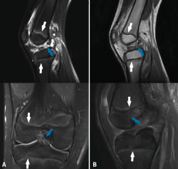 Magnetic resonance imaging shows the physes in great detail in both the distal femur and in the proximal tibia (Figure 3), and is the best technique for evaluating them(30). The presence of the physes can complicate the diagnosis of ligament lesions in immature patients(32).