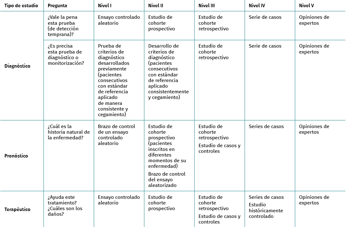 - Level of evidence: the guidelines found in the table "Level of evidence" should be followed.