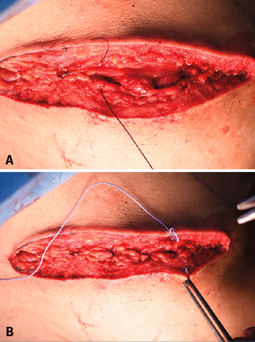 Figure 6. Repair of the trapezoidal fascia and closure.